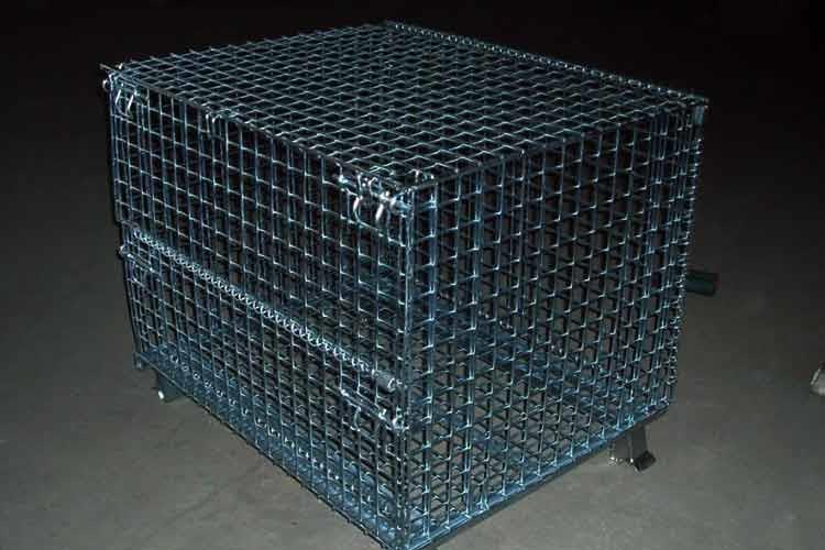 带盖仓储笼具有牢固的插销结构构,既可以使仓储笼在储物堆叠时关扣,又能够使各种不同状态下顺利开关,以储放物料。带盖仓储笼的设计是为了随时存取货物提供了方便,在堆叠存储时,可以随时打开小门存入或取出物品,免除翻仓的麻烦;并且配合叉车、升降机、吊车等设备可进行作业。