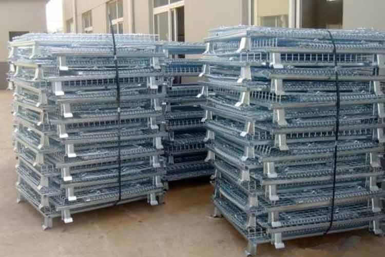 可折叠仓储笼的主要原材料是高线拉成的钢丝,一般丝径是5mm,6mm,6.4mm。网片焊接的网目间距一般为50×100,100×100,50×50。折叠式仓库笼采用U型钢焊接而成,U型钢是冷轧带钢轧机轧制而成,底部四角采用冲压件一次冲制而成。