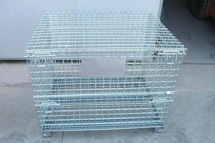 带盖仓储笼具有牢固的插销结构构,既可以使仓储笼在储物堆叠时关扣,又能够使各种不同状态下顺利开关,以储放物料。带盖仓储笼的设计是为了随时存取货物提供了方便,在堆叠存储时,可以随时打开小门存入或取出物品,免除翻仓的麻烦;并且配合叉车、升降机、吊车等设备可进行作业。
